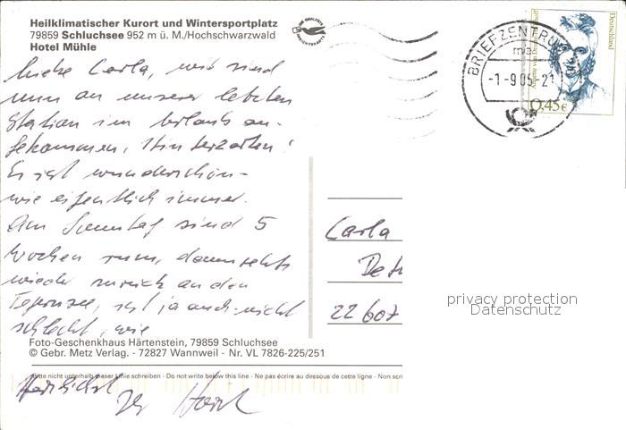 72417518 alte Postkarte Schluchsee Hotel Muehle postalisch gelaufen Erhaltung siehe scans KatCode: 11110008315102
