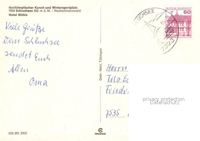 72929627 alte Postkarte Schluchsee Hotel Muehle postalisch gelaufen Erhaltung siehe scans [KathaD81] KatCode: 11110008315102