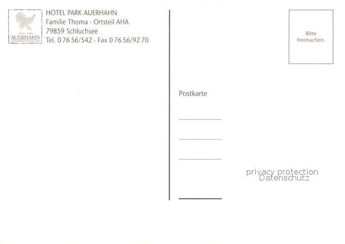 73166968 Schluchsee Hotel Park Auerhahn postalisch nicht gelaufen Erhaltung siehe scans [KathaD81] KatCode: 11110008315102