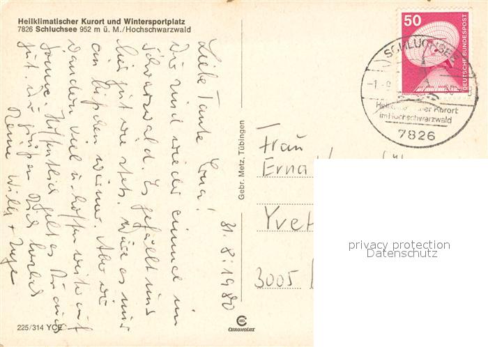 73686942 alte Postkarte Schluchsee Kurort und Wintersportplatz im Hochschwarzwald Fliegeraufnahme postalisch gelaufen Erhaltung siehe scans [FriedD77] KatCode: 11110008315102