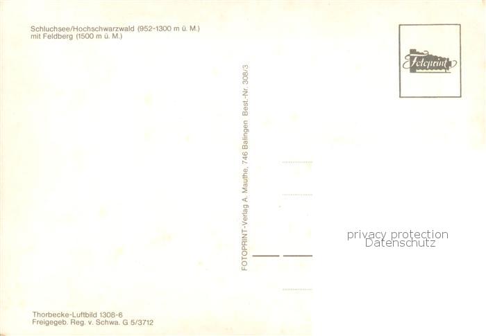 73754468 Schluchsee Panorama Blick zum Feldberg Schwarzwald postalisch nicht gelaufen Fliegeraufnahme Erhaltung siehe scans [FriedD77] KatCode: 11110008315102