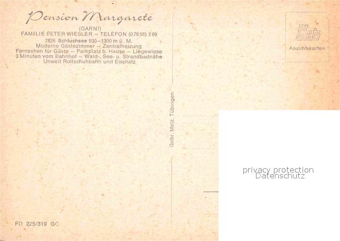 72825101 Schluchsee Pension Margarete postalisch nicht gelaufen Erhaltung siehe scans [LiesaD40] KatCode: 11110008315102