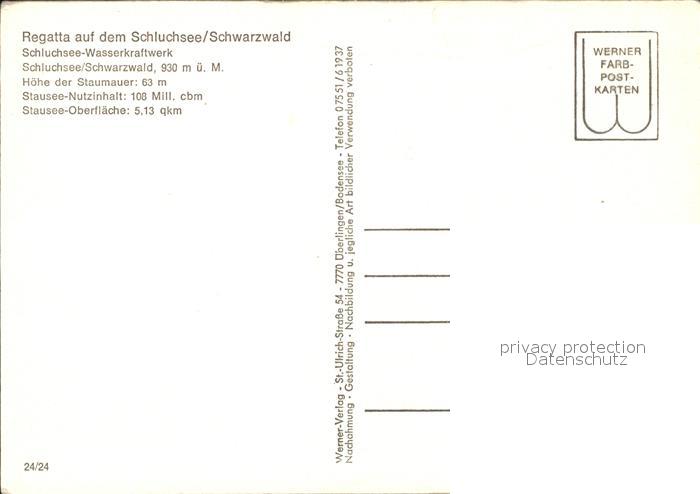 71830445 Schluchsee Regatta Schluchsee-Wasserkraftwerk postalisch nicht gelaufen Erhaltung siehe scans KatCode: 11110008315102