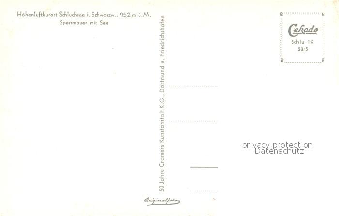 43492237 Schluchsee Sperrmauer mit See postalisch nicht gelaufen Erhaltung siehe scans [LiesaD40] KatCode: 11110008315102