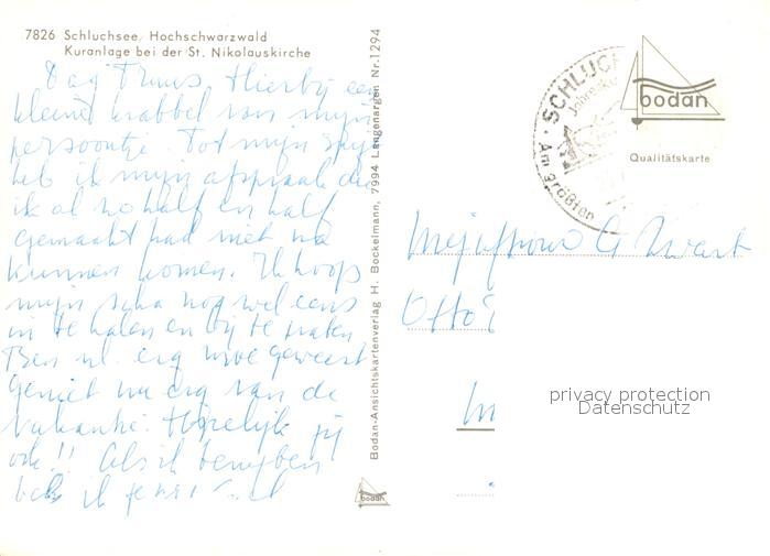 73306230 alte Postkarte Schluchsee St Nikolauskirche Hotel Schiff postalisch gelaufen Erhaltung siehe scans [WerneD78] KatCode: 11110008315102