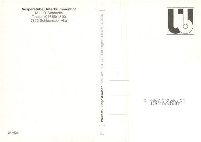 72989712 Schluchsee Unterkrummenhof Vesperstube postalisch nicht gelaufen Erhaltung siehe scans [WerneD78] KatCode: 11110008315102