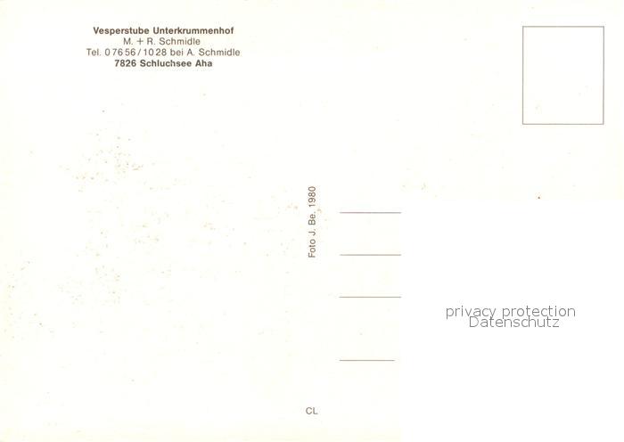 73080954 Schluchsee Vesperstube Unterkrummenhof postalisch nicht gelaufen Erhaltung siehe scans [LiesaD40] KatCode: 11110008315102