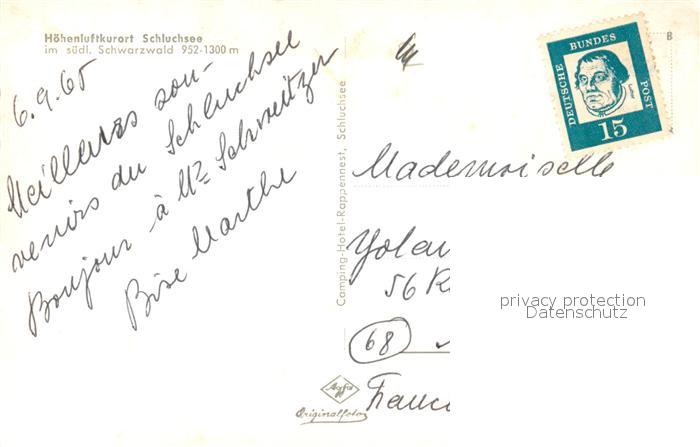 73363127 alte Postkarte Schluchsee Wegweiser Seepartie postalisch gelaufen Erhaltung siehe scans [WerneD78] KatCode: 11110008315102