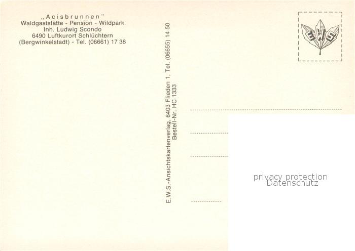 73652872 Schluechtern Acisbrunnen Waldgaststaette Pension Wildpark postalisch nicht gelaufen Erhaltung siehe scans [FriedD77] KatCode: 11110006435025