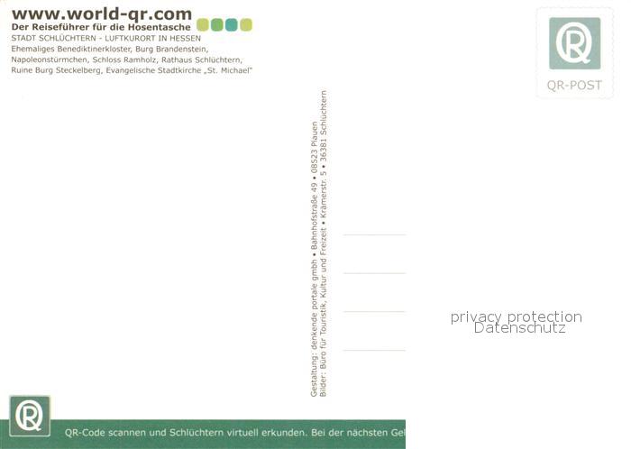 73212627 Schluechtern Ehem Benediktinerkloster Burg Brandenstein Turm Rathaus Schloss Ramholz Kirche postalisch nicht gelaufen Erhaltung siehe scans [FriedD77] KatCode: 11110006435025