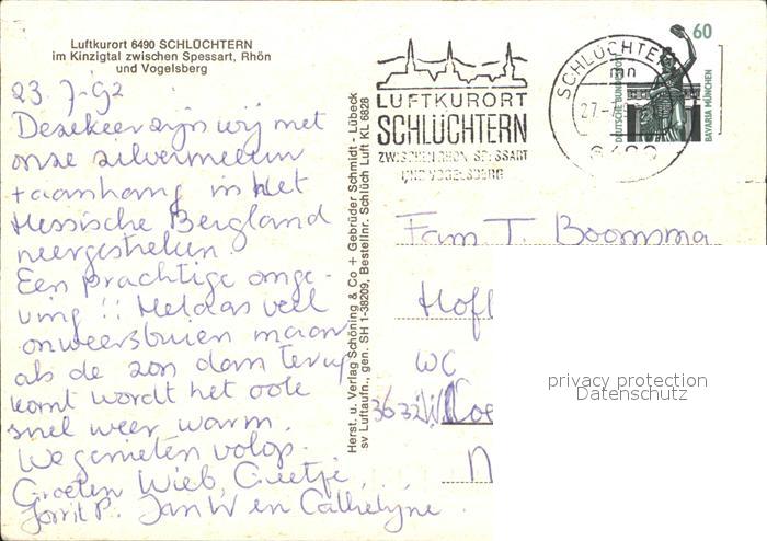 72608600 alte Postkarte Schluechtern Fliegeraufnahme Kinzigtal Spessart Rhoen postalisch gelaufen Erhaltung siehe scans [LiesaD40] KatCode: 11110006435025