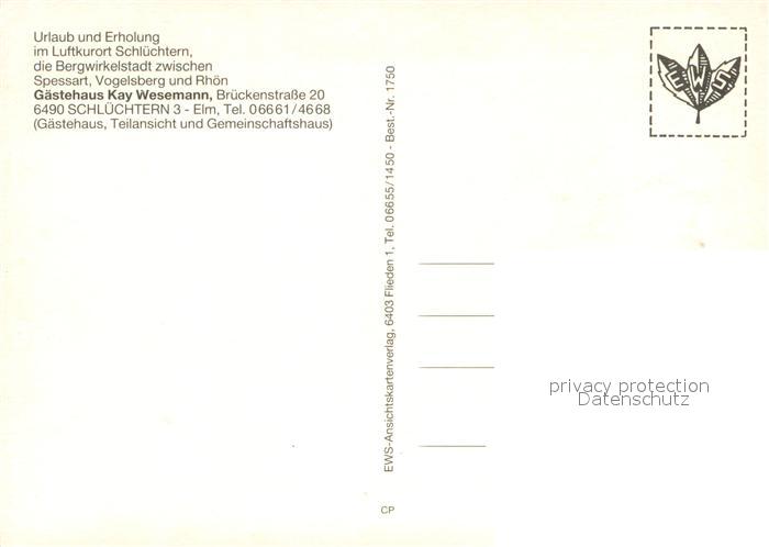 73649237 Schluechtern Gaestehaus Wesemann Panorama Luftkurort Viehweide Kuehe postalisch nicht gelaufen Erhaltung siehe scans [FriedD77] KatCode: 11110006435025