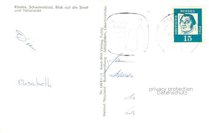 73673116 alte Postkarte Schluechtern Kloster Schwimmbad Stadtpanorama postalisch gelaufen Erhaltung siehe scans [FriedD77] KatCode: 11110006435025