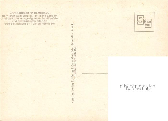 73332185 Schluechtern Schloss Cafe Ramholz Restaurant postalisch nicht gelaufen Erhaltung siehe scans [LiesaD40] KatCode: 11110006435025
