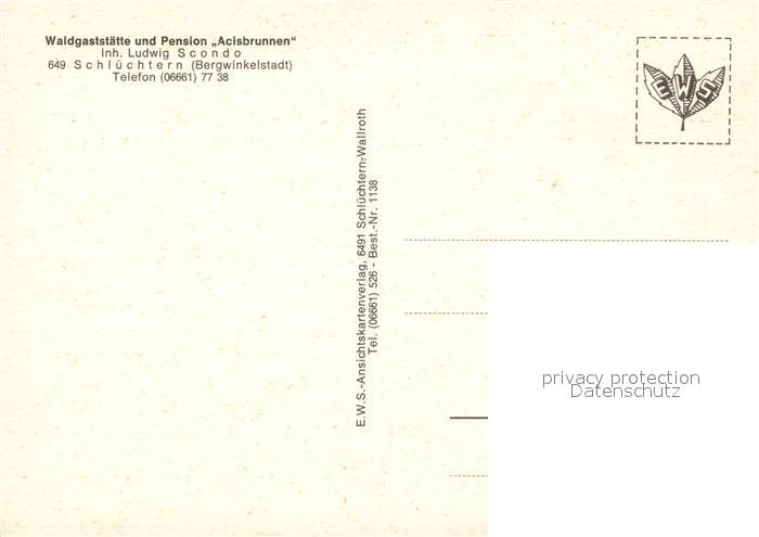 73248217 Schluechtern Waldgaststaette Pension Acisbrunnen postalisch nicht gelaufen Erhaltung siehe scans [FriedD77] KatCode: 11110006435025