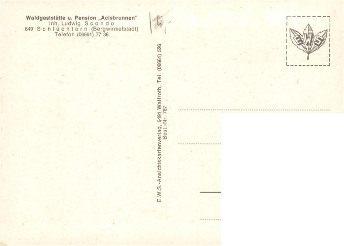 73915016 Schluechtern Waldgaststaette Pension Acisbrunnen postalisch nicht gelaufen Erhaltung siehe scans [FriedD77] KatCode: 11110006435025