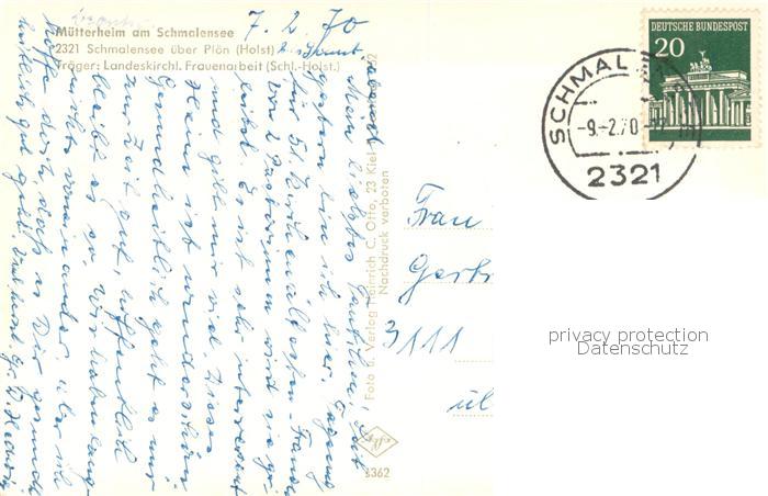 73763980 alte Postkarte Schmalensee Muetterheim am Schmalensee postalisch gelaufen Erhaltung siehe scans [WerneD78] KatCode: 11110001060072