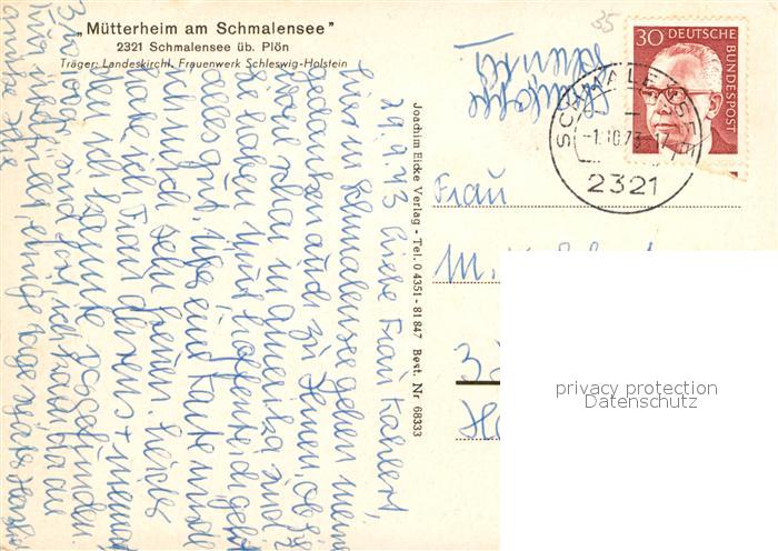73128505 alte Postkarte Schmalensee Muetterheim postalisch gelaufen Erhaltung siehe scans [NatalD47] KatCode: 11110001060072