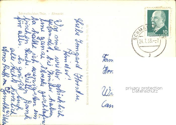 72162847 alte Postkarte Schmalkalden Thueringen Altmarkt Kirche postalisch gelaufen Erhaltung siehe scans KatCode: 11110016066063