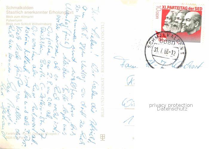 72904527 alte Postkarte Schmalkalden Thueringen Altmarkt Pulverturm Schloss Wilhelmsburg postalisch gelaufen Erhaltung siehe scans [FriedD77] KatCode: 11110016066063