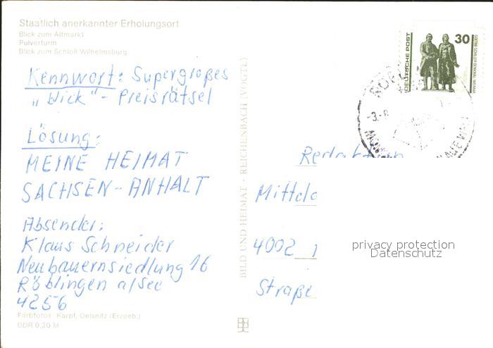 72222592 alte Postkarte Schmalkalden Thueringen Altmarkt Pulverturm Schloss Wilhelmsburg Wappen postalisch gelaufen Erhaltung siehe scans KatCode: 11110016066063