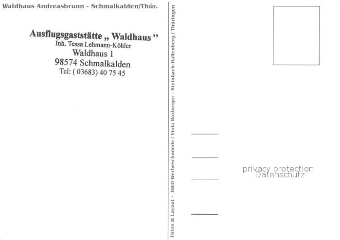 73651057 Schmalkalden Thueringen Ausflugsgaststaette Waldhaus Andreasbrunn Restaurant Wappen postalisch nicht gelaufen Erhaltung siehe scans [FriedD77] KatCode: 11110016066063