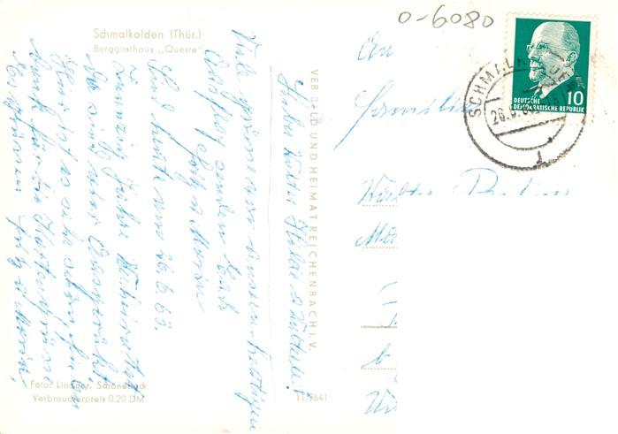 73888633 Schmalkalden Thueringen Berggasthaus Queste postalisch gelaufen Erhaltung siehe scans [WerneD78] alte Postkarte Wern Katcode 11110016066063