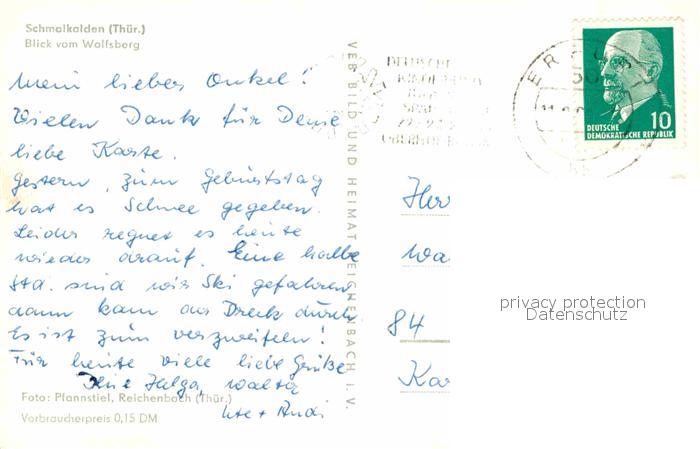 72640331 alte Postkarte Schmalkalden Thueringen Blick vom Wolfsberg postalisch gelaufen Erhaltung siehe scans [WerneD78] KatCode: 11110016066063
