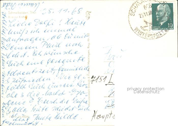 72295057 alte Postkarte Schmalkalden Thueringen Blick zur Kirche postalisch gelaufen Erhaltung siehe scans KatCode: 11110016066063