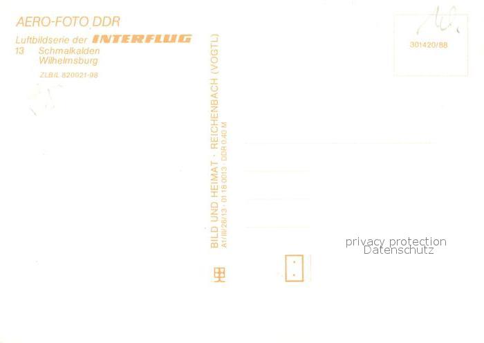 73121885 Schmalkalden Thueringen Fliegeraufnahme Wilhelmsburg postalisch nicht gelaufen Erhaltung siehe scans [LiesaD40] KatCode: 11110016066063