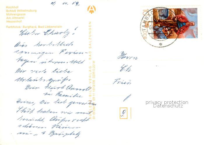 73655126 alte Postkarte Schmalkalden Thueringen Kirchhof Schloss Wilhelmsburg Mohrengasse Altmarkt Hessenhof postalisch gelaufen Erhaltung siehe scans [FriedD77] KatCode: 11110016066063
