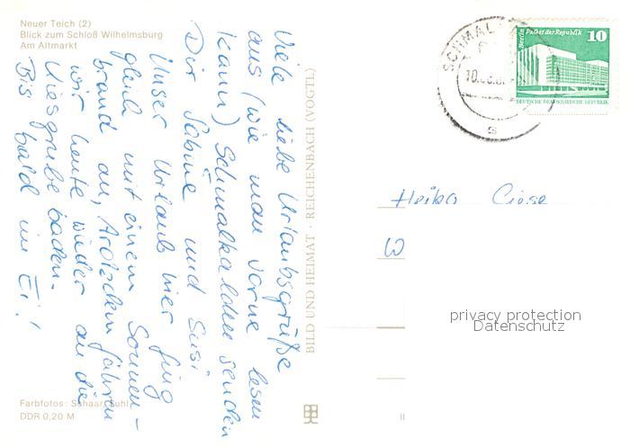 73103549 alte Postkarte Schmalkalden Thueringen Neuer Teich Schloss Wilhelmsburg Altmarkt postalisch gelaufen Erhaltung siehe scans [KathaD81] KatCode: 11110016066063