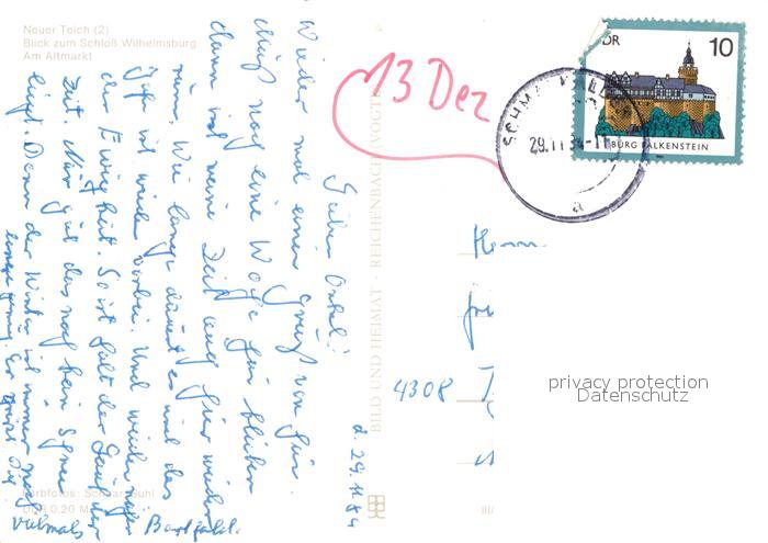 73013824 alte Postkarte Schmalkalden Thueringen Neuer Teich Schloss Wilhelmsburg Am Altmarkt postalisch gelaufen Erhaltung siehe scans [WerneD78] KatCode: 11110016066063