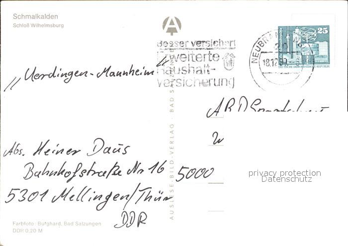 72414954 alte Postkarte Schmalkalden Thueringen Schloss Wihelmsburg postalisch gelaufen Erhaltung siehe scans KatCode: 11110016066063