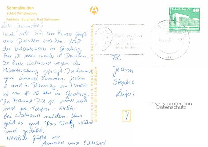 72629408 alte Postkarte Schmalkalden Thueringen Schloss Wilhelmsburg postalisch gelaufen Erhaltung siehe scans [WerneD78] KatCode: 11110016066063