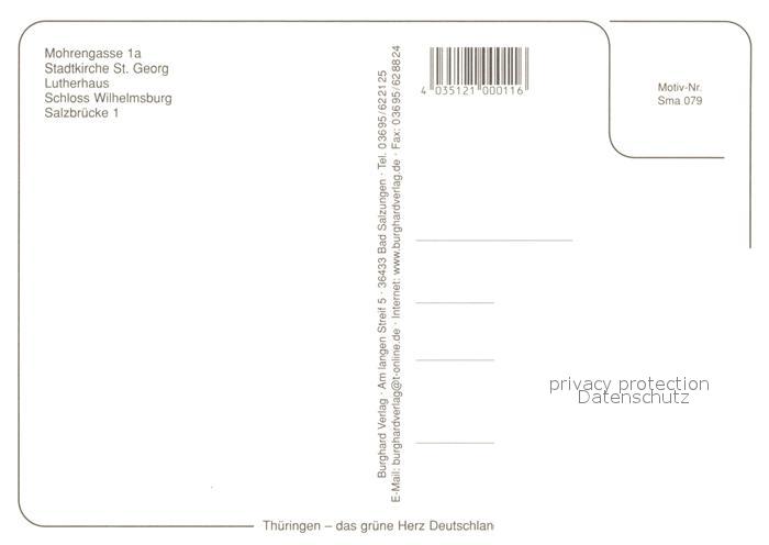 73209168 Schmalkalden Thueringen Schloss Wilhelmsburg St. Georg Salzbruecke 1 postalisch nicht gelaufen Erhaltung siehe scans [NatalD47] KatCode: 11110016066063