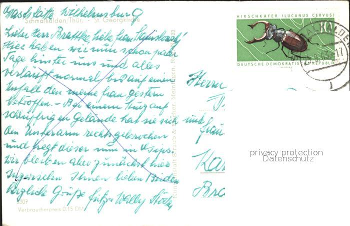 72208699 alte Postkarte Schmalkalden Thueringen St. Georgkirche postalisch gelaufen Erhaltung siehe scans KatCode: 11110016066063
