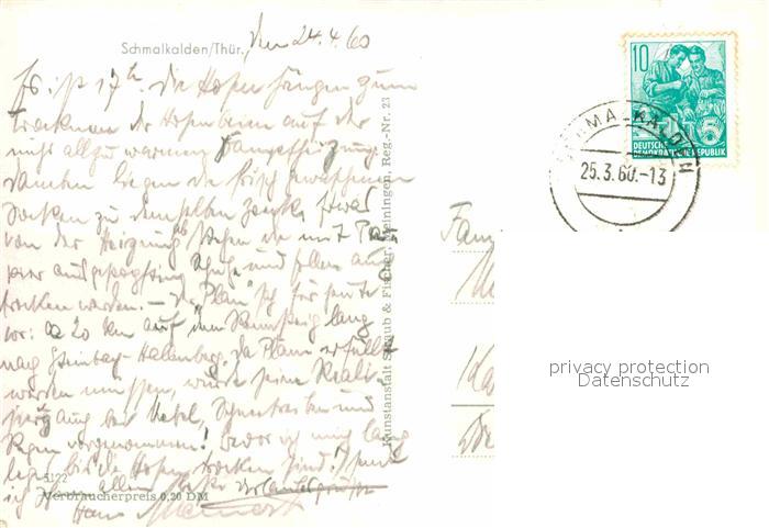 72728653 alte Postkarte Schmalkalden Thueringen Stadtbild mit Kirche postalisch gelaufen Erhaltung siehe scans [FriedD77] KatCode: 11110016066063