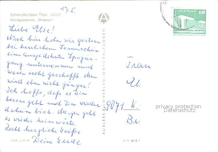 72116857 alte Postkarte Schmalkalden Thueringen Waldgaststaette Ehrental postalisch gelaufen Erhaltung siehe scans KatCode: 11110016066063