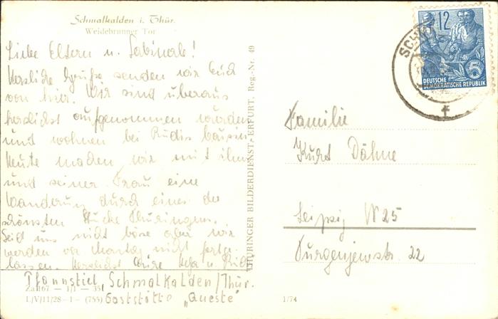 41195324 Schmalkalden Thueringen Wiedebrunner Tor postalisch gelaufen Alte Ansichtskarte Postkarte alte Postkarte Stef Katcode 11110016066063