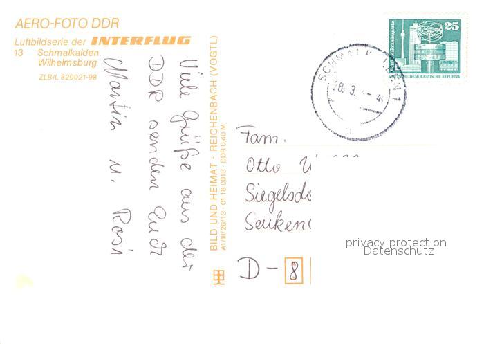 73229723 alte Postkarte Schmalkalden Thueringen Wilhelmsburg Luftbildserie der Interflug postalisch gelaufen Erhaltung siehe scans [FriedD77] KatCode: 11110016066063