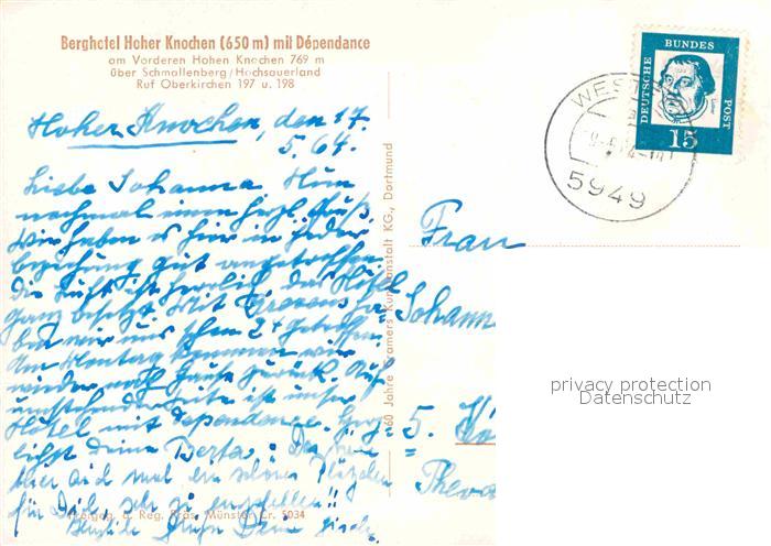 72915551 alte Postkarte Schmallenberg Berghotel Knochen Dependance postalisch gelaufen Erhaltung siehe scans [NatalD47] KatCode: 11110005958040