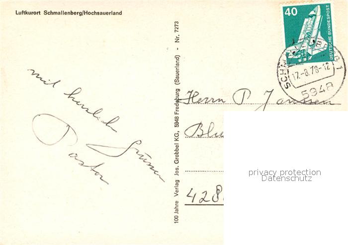 73158668 alte Postkarte Schmallenberg Fliegeraufnahme postalisch gelaufen Erhaltung siehe scans [WerneD78] KatCode: 11110005958040