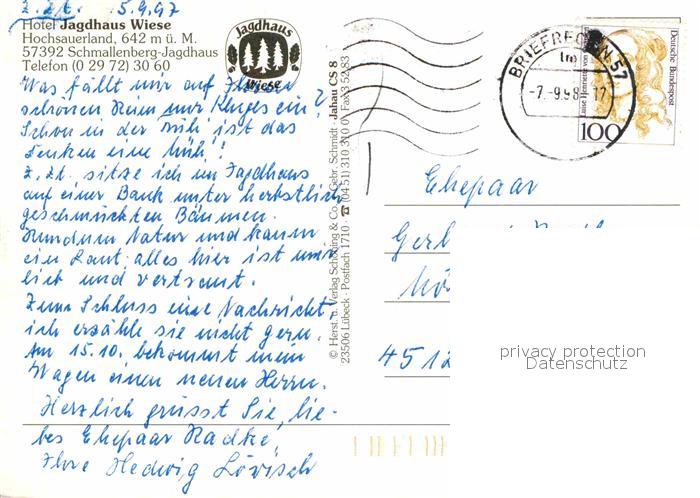 72684746 alte Postkarte Schmallenberg Fliegeraufnahme Hotel Jagdhaus postalisch gelaufen Erhaltung siehe scans [AndreD76] KatCode: 11110005958040