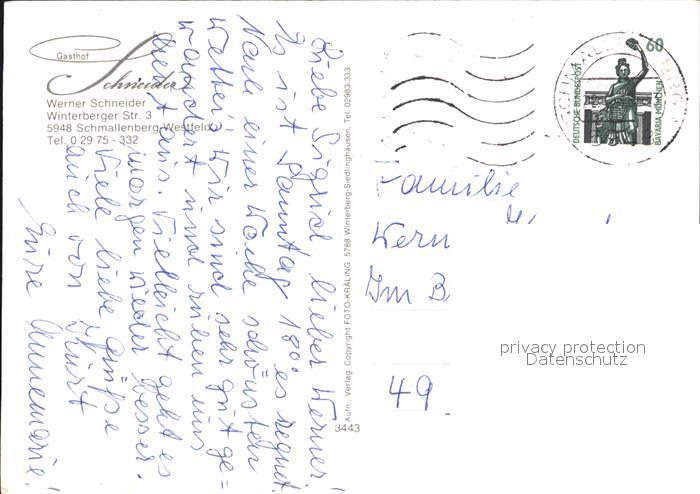 72535309 alte Postkarte Schmallenberg Gasthaus Schneider postalisch gelaufen Erhaltung siehe scans [LiesaD40 kt120box] KatCode: 11110005958040
