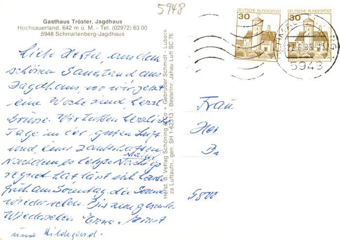 73883165 alte Postkarte Schmallenberg Gasthaus Troester Jagdhaus Fliegeraufnahme postalisch gelaufen Erhaltung siehe scans [FriedD77] KatCode: 11110005958040