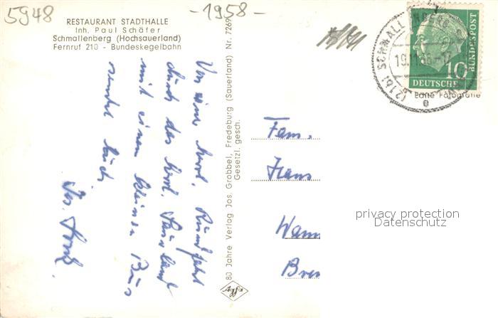 73709213 alte Postkarte Schmallenberg Gesamtansicht m. Restaurant Stadthalle postalisch gelaufen Erhaltung siehe scans [LiesaD40] KatCode: 11110005958040