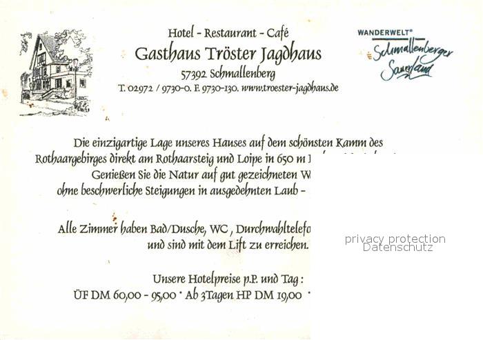 72829544 Schmallenberg Hotel Gasthaus Troester Jagdhaus postalisch nicht gelaufen Keine Postkarte (siehe scan) Erhaltung siehe scans [NatalD47] KatCode: 11110005958040