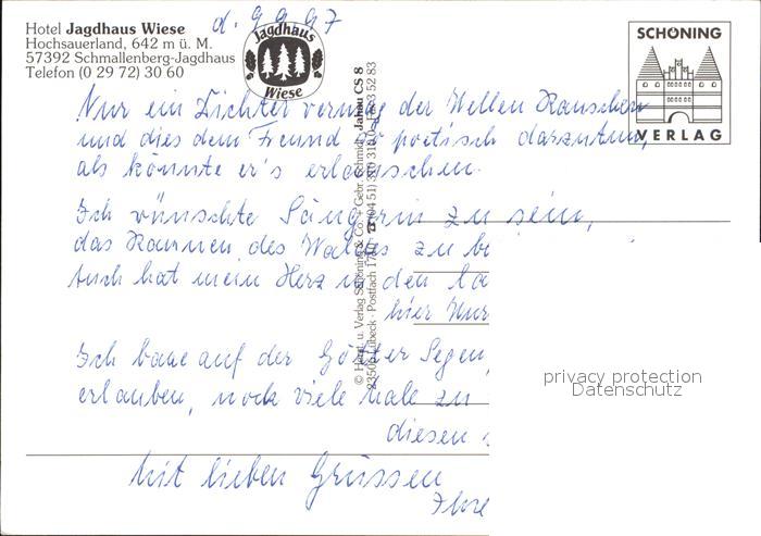 72549475 Schmallenberg Hotel Jagthaus Wiese postalisch nicht gelaufen Erhaltung siehe scans [AndreD76 kv022box] KatCode: 11110005958040