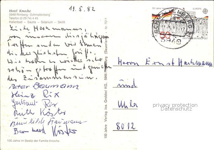 72468030 alte Postkarte Schmallenberg Hotel Knoche postalisch gelaufen Erhaltung siehe scans KatCode: 11110005958040